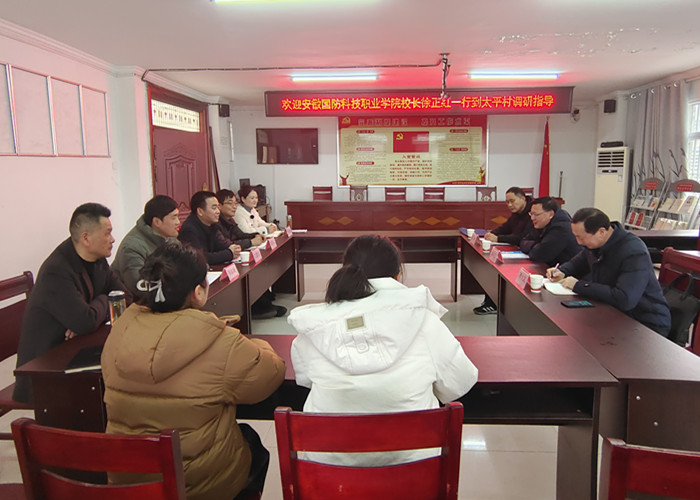 春节将至,岁寒情暖,为深入贯彻党的二十届三中全会精神,关心困难群众生活,巩固拓展脱贫攻坚成果与乡村振兴有效衔接,发挥好帮扶单位作用。1月14日下午,安徽国防科技职业学院校长徐正红一行前往三十铺镇太平村开展走访慰问活动,三十铺镇党委书记文建友、驻村工作队及村两委全程陪同。