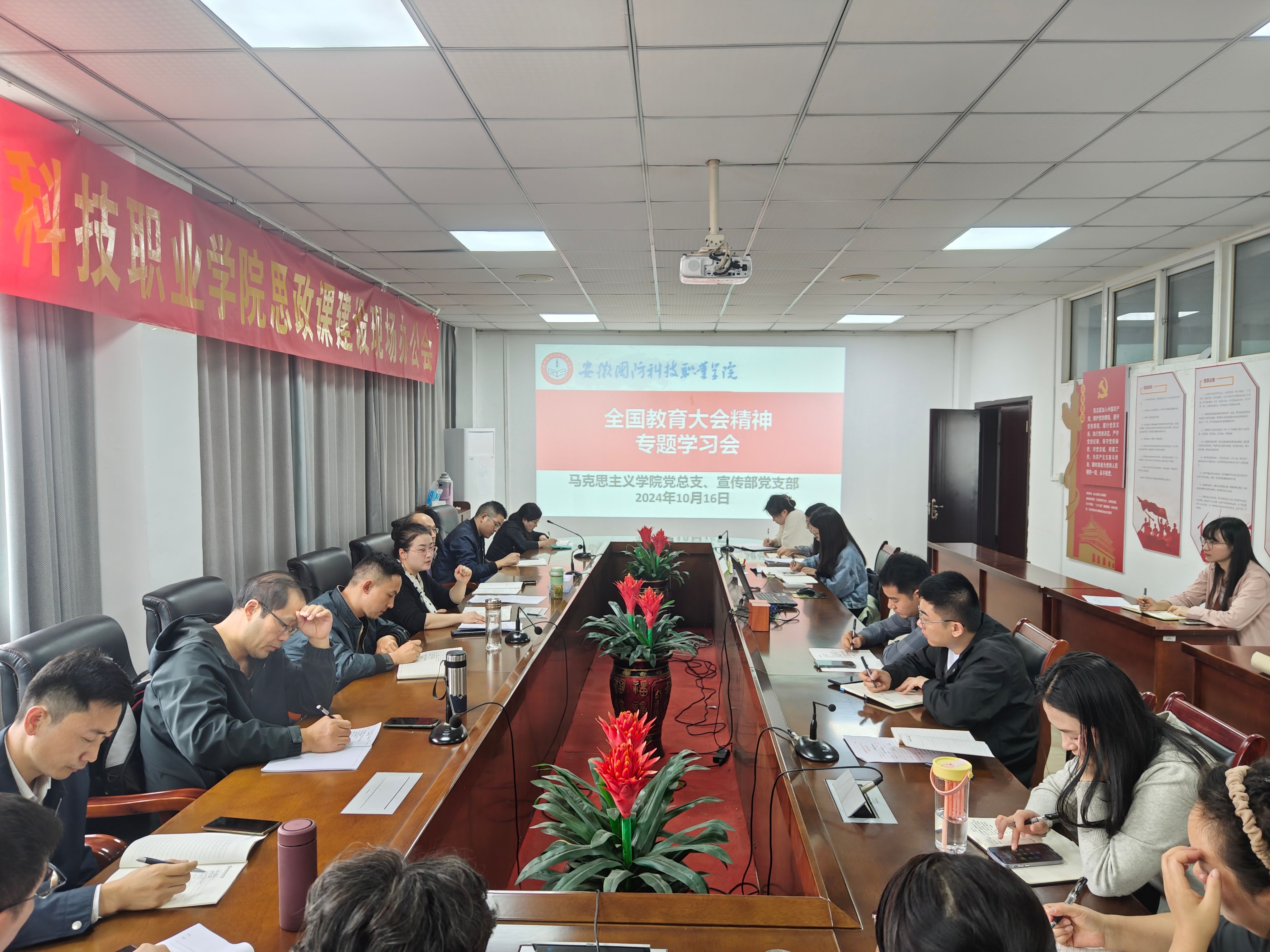 本网讯(宣传部 李浩)为进一步加强党的创新理论武装,不断提升职工党员以改革创新精神主动谋划发展、推动工作的意识,10月16日下午,马克思主义学院党总支与宣传部党支部联合在知行楼403会议室召开集体学习会,专题学习贯彻党的二十届三中全会精神和全国教育大会精神。校党委委员、宣传部部长、马克思主义学院院长陈思、马克思主义学院党总支书记黄祥出席会议,马克思主义学院党总支和宣传部党支部全体党员按时参加学习会。