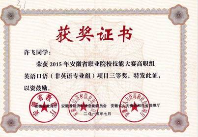 本专业是校企合作特色专业,由学校和企业共同研讨制定人才培养方案,在学校和企业的共同努力之下,专业建设成果非常突出,培养的学生各方面表现非常优异,在各级各类比赛中脱颖而出。2015年,我专业14级学生杜眉在“昆山花桥杯”第十届安徽省大学生职业规划设计大赛中荣获金奖,我专业学生许飞参加安徽省职业技能大赛口语赛项获得三等奖。2016年,我专业15级学生查礼仪在“昆山花桥杯”第十一届安徽省大学生职业规划设计大赛中再次荣获金奖,我专业14级学生叶晓萌参加安徽省“外研社杯”写作比赛获得三等奖。2017年,我专业16级学生吴微参加安徽省“外研社杯”写作比赛获得三等奖。2018年,吴微同学又在2018年安徽省职业技能大赛口语赛项获得二等奖的好成绩。由于在校期间的积极学习和锻炼,不少学生实现了自己的航空梦,成为了东方航空,南方航空,春秋航空等航空公司的一员。