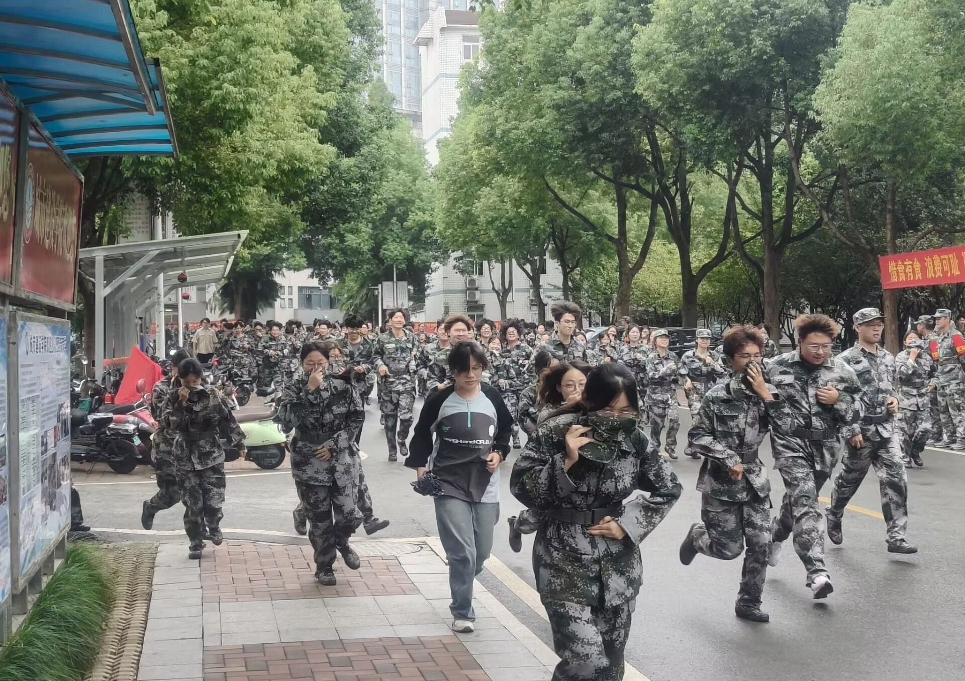 随着防空警报划破校园上空,演练正式启动。宿舍区内,新生们在教官引导下迅速起身、整理着装,沿指定路线快速下楼;教学楼里,同学们立即响应,以手捂口鼻、低姿行进的方式,有序向操场等集结区域疏散。整个过程中,新生们动作迅速、配合默契,展现出军训期间培养的良好纪律性与团队协作力。